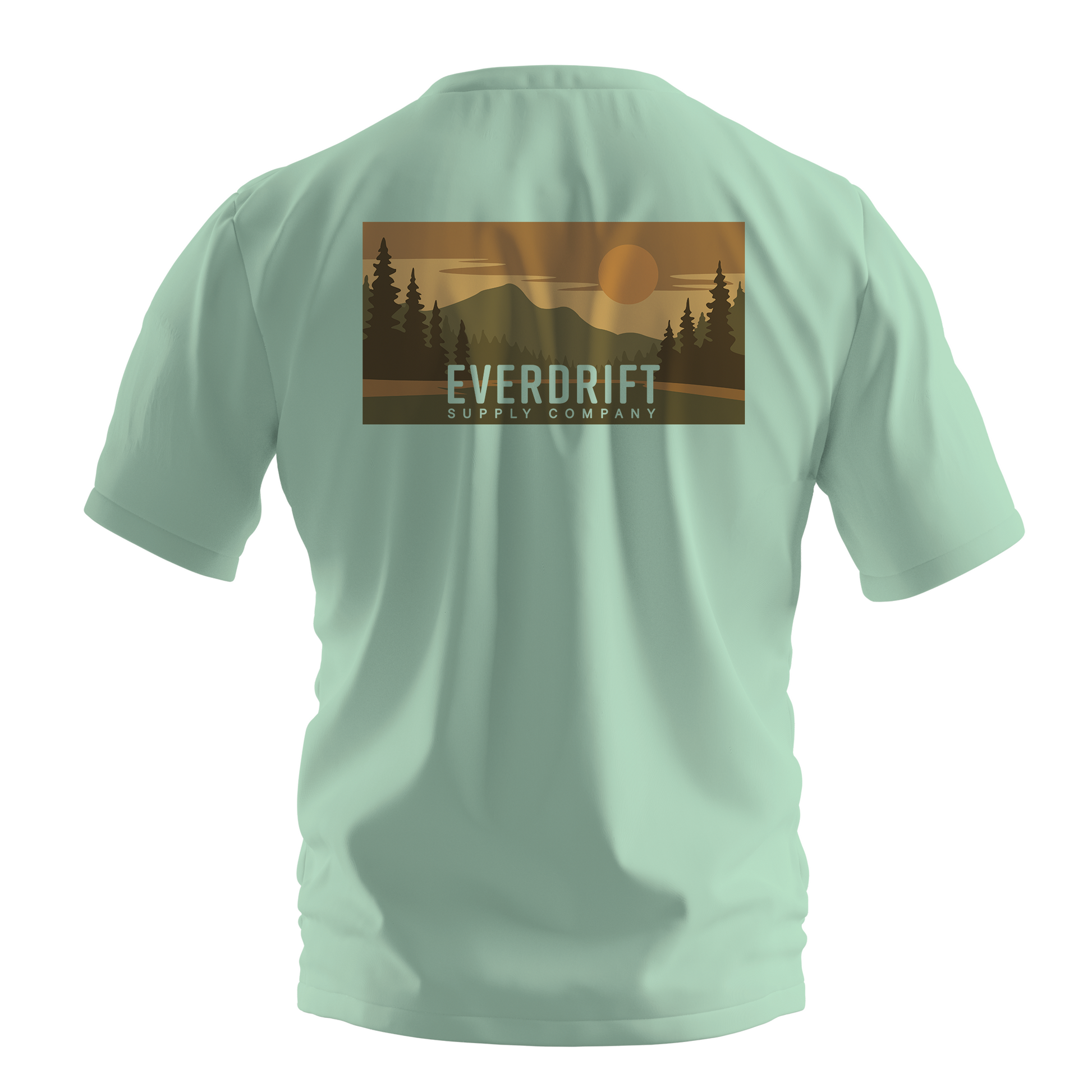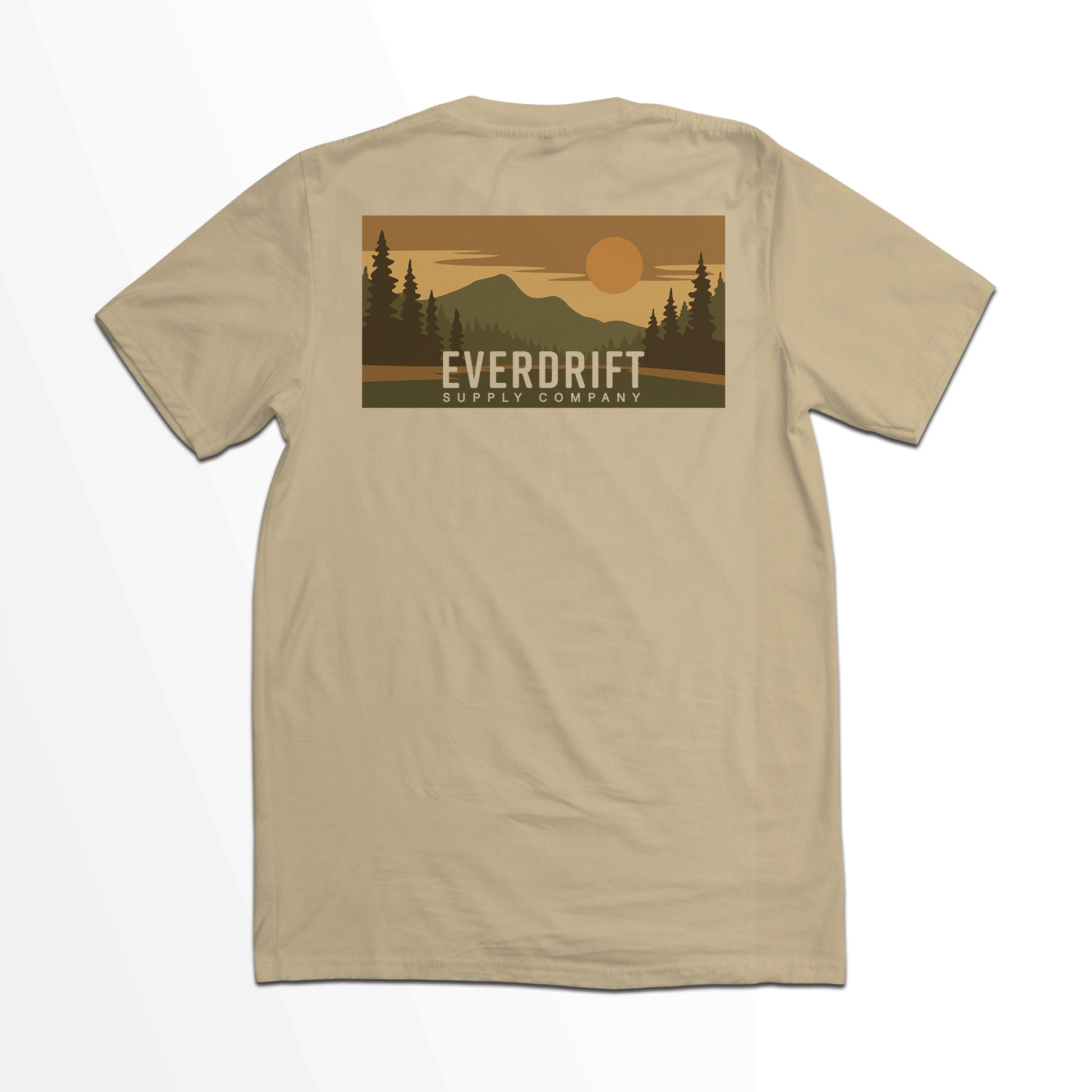 This design features a warm mountain sunset framed by tall pines and rolling ridgelines, evoking the quiet calm of the wilderness. Printed on a premium 100% ring spun cotton, it’s soft, durable, and made for those who find inspiration in nature’s golden hours.